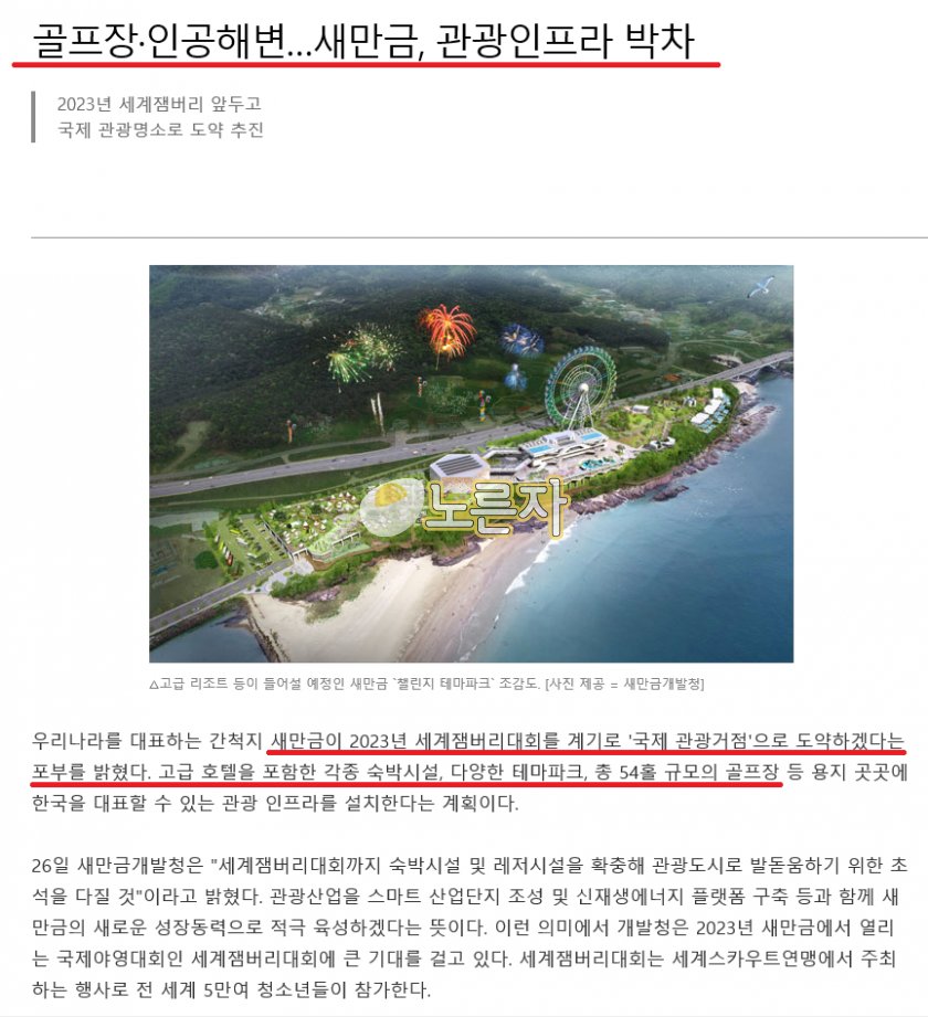 2023년 새만금잼버리대회 개최이전에 준공이 목표이죠..